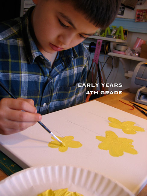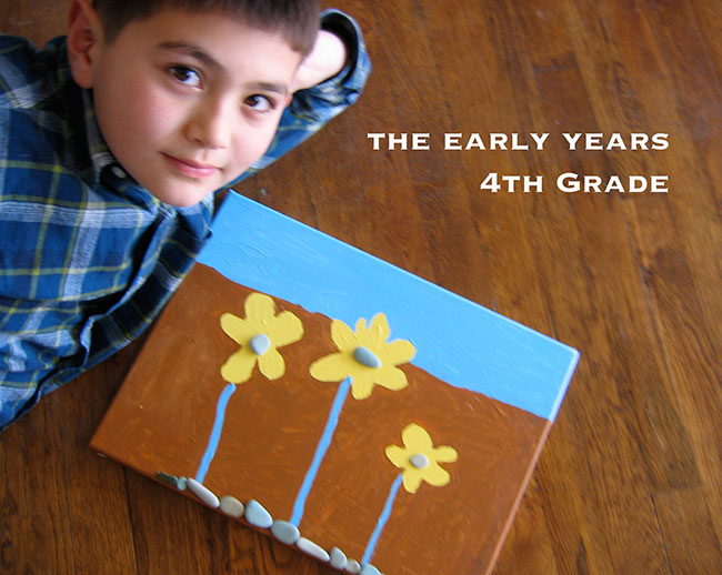 Flowers in Stone Garden: Mixed Media Painting. Acrylic and Stones – 2005, 4th Grade